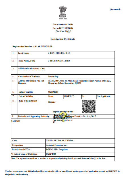 GST In : 29AAKFJ7217N1ZP